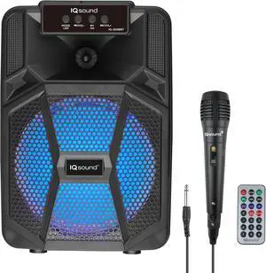 IQ Sound IQ-2108BT Cyber Flex8 8" Portable Bluetooth Speaker w/True Wireless Stereo, LED Light Show, USB/SD/AUX/Mic/FM, 5W RMS, 1200mAh Rechargeable Battery, Top Control Panel & Carry Handle