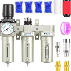 0-240PSI 3/4 Inch NPT Industrial Grade Three Stage Air Drying System, Particulate Filter,Desiccant Dryer and Air Regulator,Coalescing Filter (Manual Drainage)