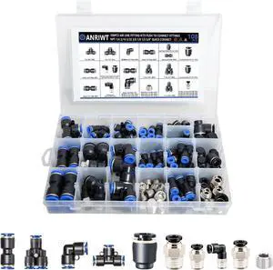 108Pcs Quick Connect Air Hose Fitting Kit, NPT 1/4,3/16, 5/32,3/8,1/8,1/2,5/8" Push To Connect Fittings Air Line Pneumatic Fittings Kit Connectors for Automotive Car or Industrial Workshops