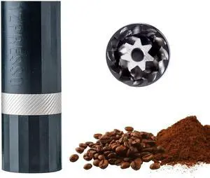 Q Air Manual Coffee Grinder-Black, Mini Slim Travel Sized Fits in the plunger, Stainless Steel Conical Burr, Numerical Adjustable Setting for Pour Over French Press Cold Brew.