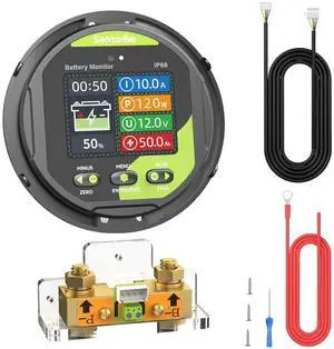 0-500A Battery Monitor with Shunt, 8-120V IP68 Waterproof LCD Screen with Buzzer Alarm for RV Solar Marine Off-Grid System, Capacity Percentage Time Power Voltmeter Display