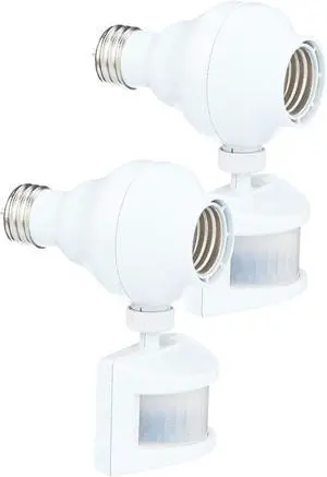 Screw in Motion Sensor Light Socket for Outdoor Lighting, 2 Pack - This Motion Sensor Light Socket Adapter Turns On Lights When Movement is Detected, 20ft Distance - (OMLC163BC)