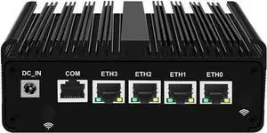 Firewall Mini PC N100 Quad Core up to 3.4GHz, 8GB DDR5 RAM 128GB NVME SSD, 4xi226-V 2.5G LAN, 1xCOM, 2xUSB 3.0, 4xUSB 2.0, HD/DP, 4G/5G SIM Slot, Auto Power On