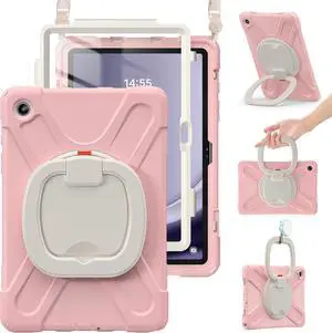 Vszerda Case for Sam-sung Galaxy Tab S10 Lite/S10 FE 2025 & S9 FE/S9 2023 & S8/S7 10.9"/11" | Heavy Duty Silicone Cover with Handle Grip, Kickstand, Shoulder Strap & S Pen Holder, Sakura Pink