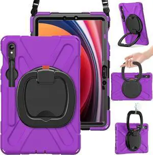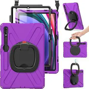 Case for Sam-sung Galaxy Tab S10+/S9 FE+/S9+/S8+/S7 FE/S7+ 12.4\u201d SM-X820/X610/X810/X800/T730/T970, Silicone Cover w/Screen Protector/Handle Grip/Kickstand/Shoulder Strap/S Pen Holder, Purple