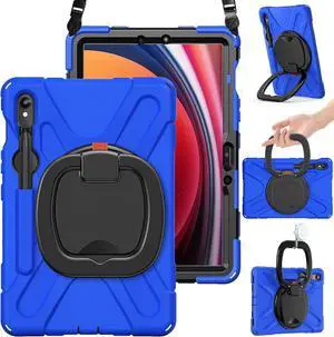 Vszerda Rugged Case for Galaxy Tab S10 Lite/S10 FE/S9 FE 10.9 Inch & S9/S8/S7 11 Inch 2025/2023 SM-X400/X520/X510/X710 | Heavy Duty Silicone Cover with Kickstand, Shoulder Strap & S Pen Holder, Blue