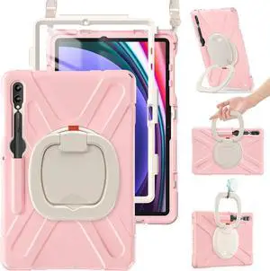 Case for Sam-sung Galaxy Tab S10+/S9 FE+/S9+ 12.4\u201d 2024, Rugged Silicone Cover with Shoulder Strap/S Pen Holder/Screen Protector/Kickstand/Handle Grip for Tab S9+/S8+/S7 FE/S7+, Sakura Pink