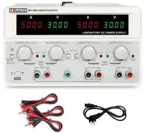 MATRIX Triple Linear DC Power Supply 30V 5A 315W, Adjustable Benchtop Power Supply Variable 10mV/1mA with Low Ripple, 4 Digits Display Series and Parallel Mode, MPS-3005H-3