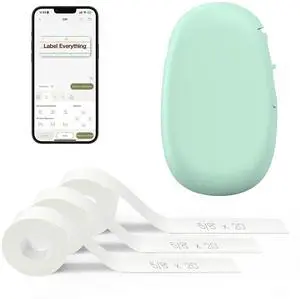 E10 Bluetooth Label Maker Machine with 3 Tapes, Continuous Waterproof Label, Versatile App with 35 Fonts and 1k+ Icons, Inkless Labeler for Home, Kitchen, School, Office Organization, Green