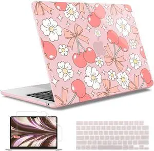 May Chen for MacBook Air 13.6 inch Case A3240 M4 A3113 M3 A2681 M2 with Retina Dispaly, 2025 2024 2023 2022 Release, Plastic Hard Shell Case with Keyboard Cover, Cherries Bows