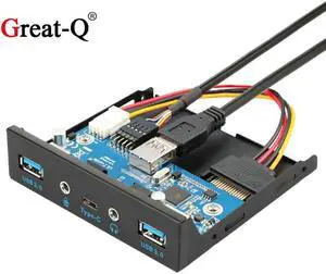USB 3.0 Hub Type-A Type-C and HD Audio Port Front Panel For PC Desktop 3.5" Floppy Bay
