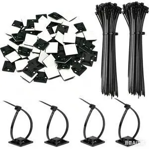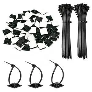 Zip Tie Mounts 100 Pack Black Self-Adhesive Cable Zip Tie Mounts Nylon Wire Clips and Anchor Holders for Cord Management in Home, Car&Of For Home Office Cable Management