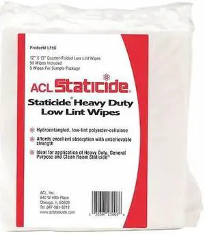 ACL STATICIDE LF-50 Disposable Wipes, 12" x 13", 50 per Pack Sheets/ Pack