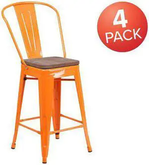FLASH FURNITURE 4-CH-31320-24GB-OR-WD-GG Orange Metal Counter Stool,24"