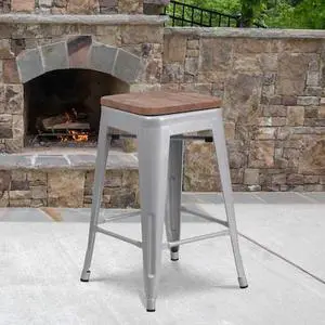 FLASH FURNITURE 4-CH-31320-24-SIL-WD-GG Silver Metal Counter Stool,24"