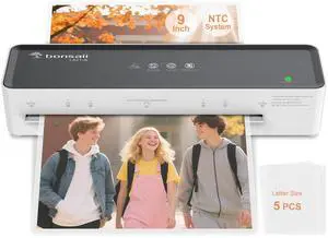 9-Inch Thermal Laminator Machine, Fast Warm-Up, Jam-Free Technology, Laminates Letter/ID/Photo Size, White/Gray