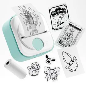 Sticker Printer, Q02 Print Pods Mini Printer Thermal Bluetooth Sticker Maker with 1 Rolls Paper, for DIY Creation, Study Notes, Memo, List, Work Plan,Journaling, Gifts