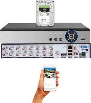 Surveillance Digital Video Recorder 16CH HD-TVI/CVI/AHD H264 Full-HD DVR 1TB HDD HDMI/VGA Output Cell Phone APPs for Home/Office Work @1080P/720P TVI/CVI/AHD Analog & IP Camera up to 5MP