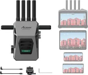 ACCSOON CineView Master 4k Wireless Video Transmission System Transmitter&Receiver 2.4+5Ghz+6GHz Tri-Band Transmission 604k 25 ms Latency 8202ft Range 1 Wired + 4 Wireless Connectionsonly Receiver