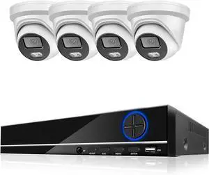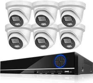 H.265 8CH 4K Security Camera System POE 8MP Ai Human Indoor Outdoor Metal Dome Color Night Video Surveillance Camera Kit(None,14)