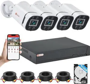 8CH H.265+ 3K Lite Wired CCTV Security Camera System with Human Vehicle Detection, 4X IP68 5MP Surveillance Camera for Indoor Outdoor, 1TB Hard Drive for 24-7 Recording, Remote Access