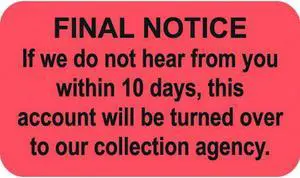 Billing Collection Labels, Fl Red - FINAL NOTICE, 1-1/2" X 7/8" (Roll of 250)