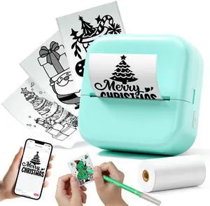 Sticker Printer M02X Inkless Mini Print Pod Bluetooth Portable Sticker Maker Machine Thermal Printer Come with 1 Roll Paper for Study Notes, Memories, Photo