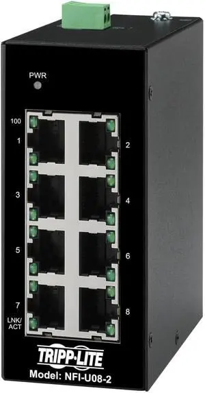 Tripp Lite Industrial 8 Port Ethernet Network Switch 10/100 Mbps -40° to 167°F Temperature Range Unmanaged TAA Compliant DIN Mount (NFI-U08-2)