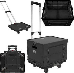 WM99800BK Rolling Crate Cart with Wheels, Foldable Utility Cart for Teachers, Shopping, Office | Silent Wheels, Aluminum Handle, 132 lbs Capacity Black