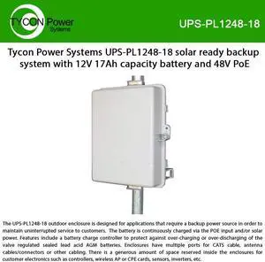Tycon Systems UPS-PL1248-18 UPSPro Series 30W44; 200VA Outdoor UPS Backup Power Systems - 48V POE