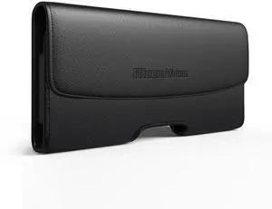 MV Horizontal Leather Pouch With Card Holder In Black (5.8X3.2X0.7 Inches)