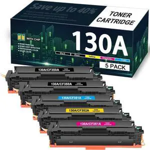 DOSUM 130A CF350A Toner Cartridge (5-Pack) Replacement for 130A CF350A CF351A CF352A CF353A for Laserjet Pro Color MFP M177fw M176n M177 M176 Printer (2 Black, 1 Cyan, 1 Magenta, 1 Yellow)