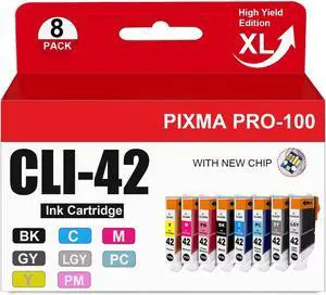 CLI-42 CLI42 Ink Cartridges 8-Pack Compatible CLI 42 Ink Use for Pixma Pro-100 Pro 100 Pro-100S Printers (Black,Grey,Cyan,Light Grey,Photo Cyan,Magenta,Photo Magenta,Yellow)