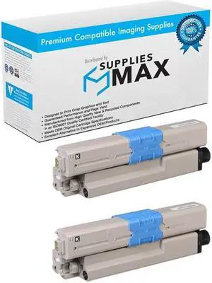 SuppliesMAX Compatible Replacement for Okidata C332dn/C332dnw/MC-363dn/MC-363dnw Black Toner Cartridge (2/PK-3500 Page Yield) (46508704_2PK)
