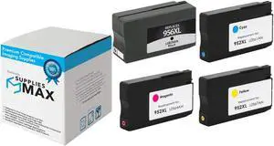 SuppliesMAX Remanufactured Replacement for HP OfficeJet Pro 7720/7730/7740/8200/8700/8715/8720/8725/8730/8740/8745 High Yield Inkjet Combo Pack (BK/C/M/Y) (NO. 952XL) (N9K28AN)