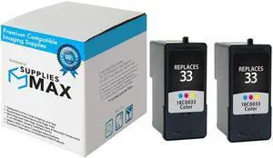 SuppliesMAX Remanufactured Replacement for Lexmark P4330/P4350/P6250/P6350/P915/X3350/X5250/X5270/X5450/X7170/X7300/X7350/X8350/Z815/Z816 Black Inkjet (2/PK-190 Page Yield) (NO. 33) (18C0534)