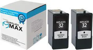 SuppliesMAX Remanufactured Replacement for Lexmark P4330/P4350/P6250/P6350/P915/X3350/X5250/X5270/X5450/X7170/X7300/X7350/X8350/Z815/Z816 Black Inkjet (2/PK-200 Page Yield) (NO. 32) (18C0533)