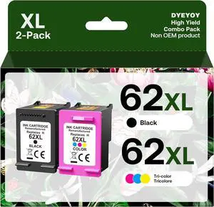 62XL Ink Cartridge Combo Pack Black & Color Replacement for HP 62 XL, 62XL Remanufactured Ink Work with Envy 5540 Series