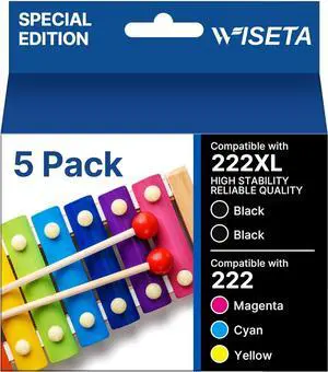 222XL Ink Cartridges Remanufactured Replacement 222 222 XL T222 Combo Pack to use with XP-5200 WF-2960 Printer (1 Black, 1 Cyan, 1 Magenta, 1 Yellow, 4 Pack)