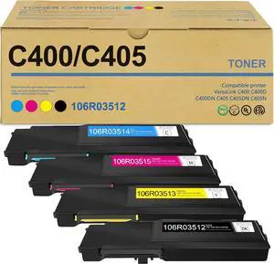 C400 / C405 Toner Cartridge (4 Pack,BK/C/M/Y) High Capacity 106R03512 106R03513 106R03514 106R03515 Toner Set Replacement for Xerox C405 C400 C400D C400DN C405 C405DN Printer