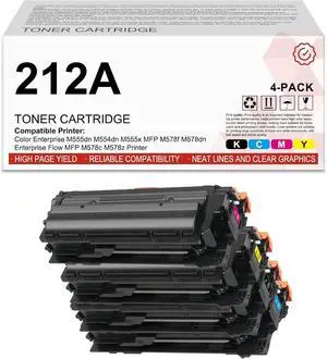 212A Toner Cartridges 4-Pack ( with Chip ) Replacement for 212A Black W2120A Color M554dn M555dn M555x Flow MFP M578c M578z Printer | W2120A W2121A W2122A W2123A