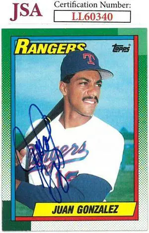 Juan Gonzalez signed 1990 Topps Baseball Card #331- JSA #LL60340 (Texas Rangers/On Card Auto)