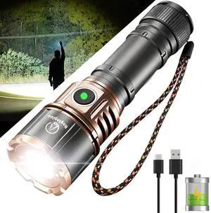 HNGLNGJOE Rechargeable Flashlight with Ignition Lens, 2000Lumens High Lumen Tactical Flashlight with Fire Starter, Zoomable Handheld Torch, USB Rechargeable, EDC Flashlight for Camping Emergency