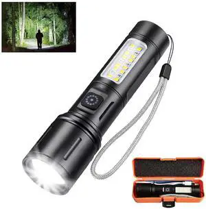 Rechargeable Flashlight High Lumens,1000 Lumens Flashlights for Home,Outdoor & Camping,IPX4 Waterproof LED Flashlights High Lumens Rechargeable,Zoomable Tactical Flashlights with SidelightBrand: KaitoPart Number: J0BB25890Selling Unit: PackSpecifications: Adjustable Light Modes, Portable, Adjustable Focus, High Lumens, Aluminum, lithium_ion, 1, 6.3 L x 1.6 W x 2.4 H inches, 0.3 pounds, water_resistant, 1 year manufacturer., Jercoda, FlashlightModel #: 775326865932