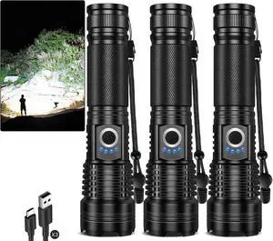Super Bright Rechargeable LED Flashlights 2500,000 High Lumens, Flashlights High Lumens Up to 25H Long Battery Life| Zoomable| 5Light Modes| IP67 Waterproof, High Powered Flashlight for Camping HomeBrand: KaitoPart Number: XHP-160-A8-2024Selling Unit: PackSpecifications: Super Bright Flashlight 2500,000 High Lumens, Rechargeable:Powerful Battrey Life With 5000mAh High Capacity Battery, Adjustable 5 Light Modes;Adjustable Focus;Fast Type-C Charging;As Emergency Power Supply, Durable;Shock Resistant;Dustproof;Impact Resistant;Portable;Weatherproof;, 25 hours, Aluminum, lithium_ion, 1, 8.89 L x 1.4 W x 2.4 H inches, waterproof, 2 year., Grentay, FlashlightModel #: 835493114704