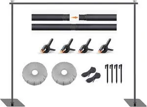 7.5x10FT Adjustable Backdrop Stand Kit - Heavy Duty Iron Photography Background Support System with Portable Base for Wedding/Birthday/Party Studio Shoots