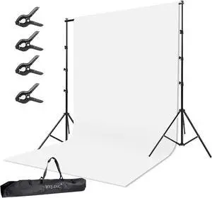 Photo Background Support System with 10 x 10ft Backdrop Stand Kit 10 x12ft 100% White Cotton Muslin Backdrop Clamp Carry Bag for Photography Video Studio