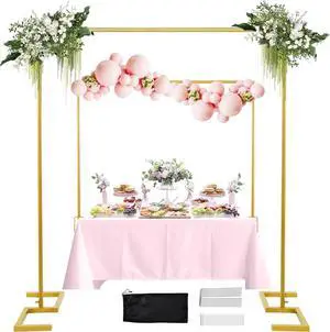8.2FT Square Arch Backdrop Stand Metal Gold Backdrop Stand Heavy Duty Adjustable Extra 2 Clamps Change Over The Table Rod Stand Wedding Balloon Arch Stand for Valentine Parties Decoration