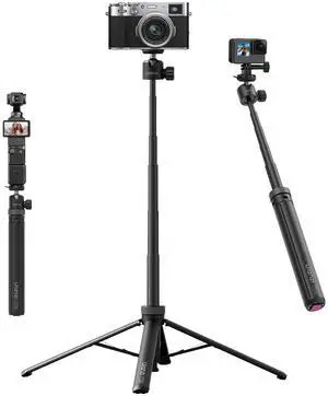 Upgrade 59" Tripod Stand w Auto-Open 4-Leg, ULANZI TT24 Vlogging Extension Pole, CKa Quick-Release Ball Head w 1/4" Screw and Action Adapter for Camera/GoPro/DJI Action Pocket/Insta360/Lights