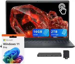 Dell Inspiron 15.6'' FHD Touchscreen Laptop, AMD Ryzen 5 7530U, 16GB RAM, 2TB Storage(1TB SSD+1TB Docking Station Set), AMD Radeon Graphics, Numeric Keypad, Windows 11 Pro, Black